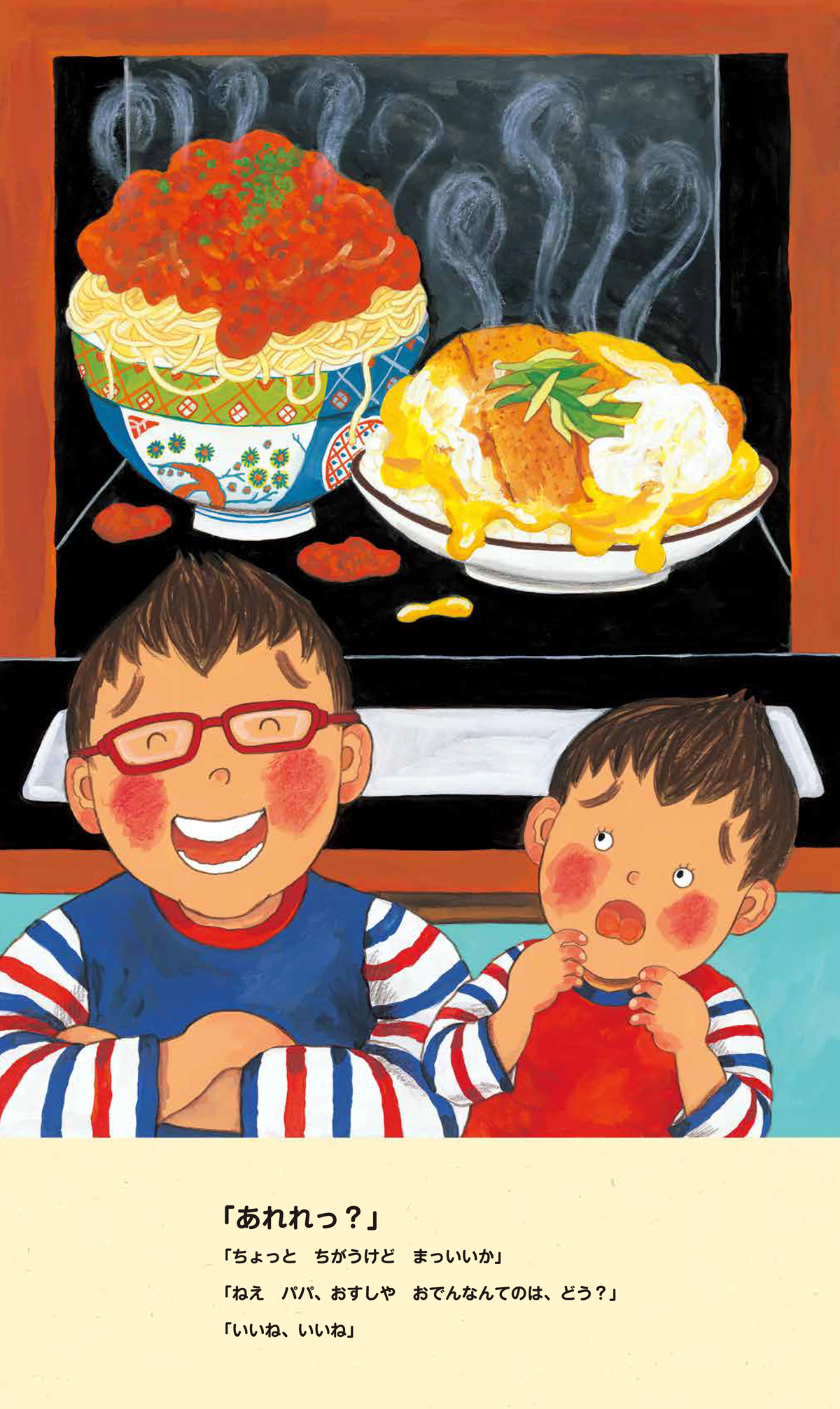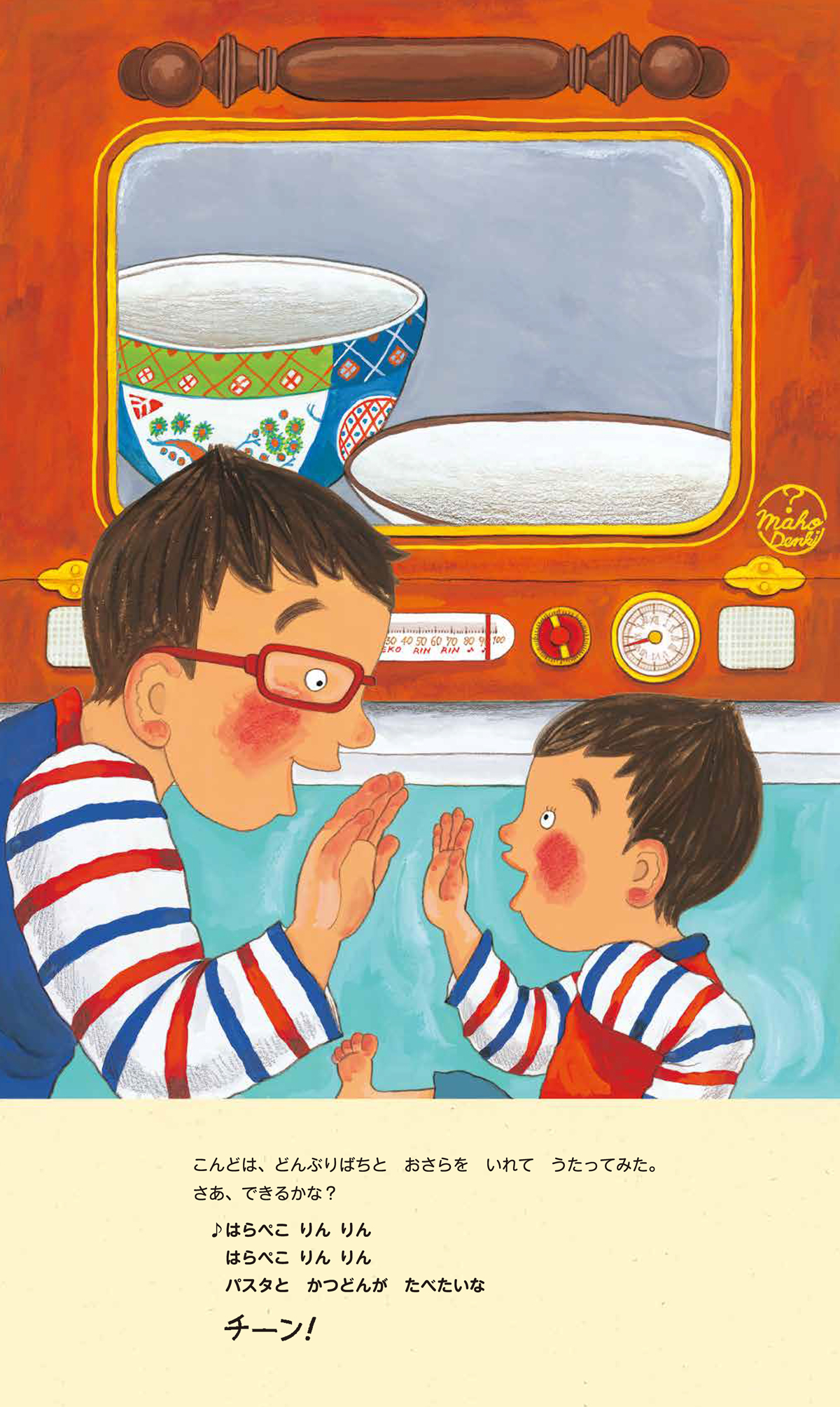 ある日、家に突然不思議な電子レンジが届いた。お皿を入れて食べたいものを歌うと、空っぽのお皿にごちそうが登場!おいしそうな料理の絵と言葉のリズムがとっても楽しい1冊です。
