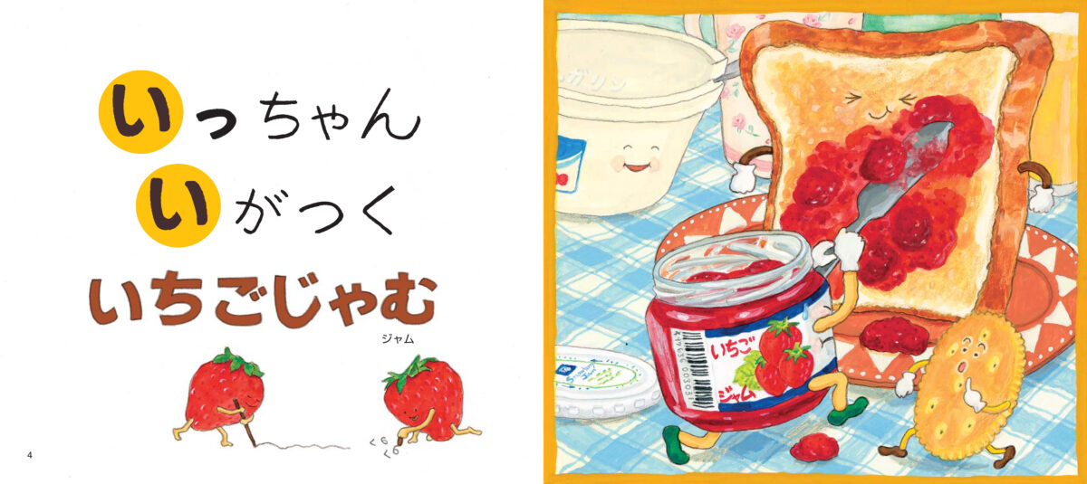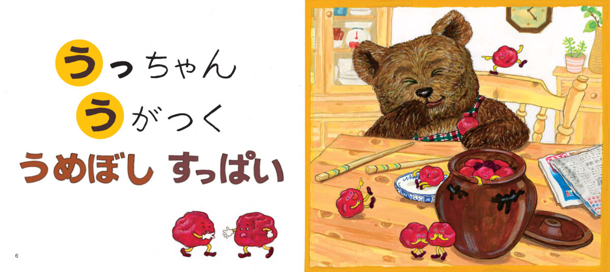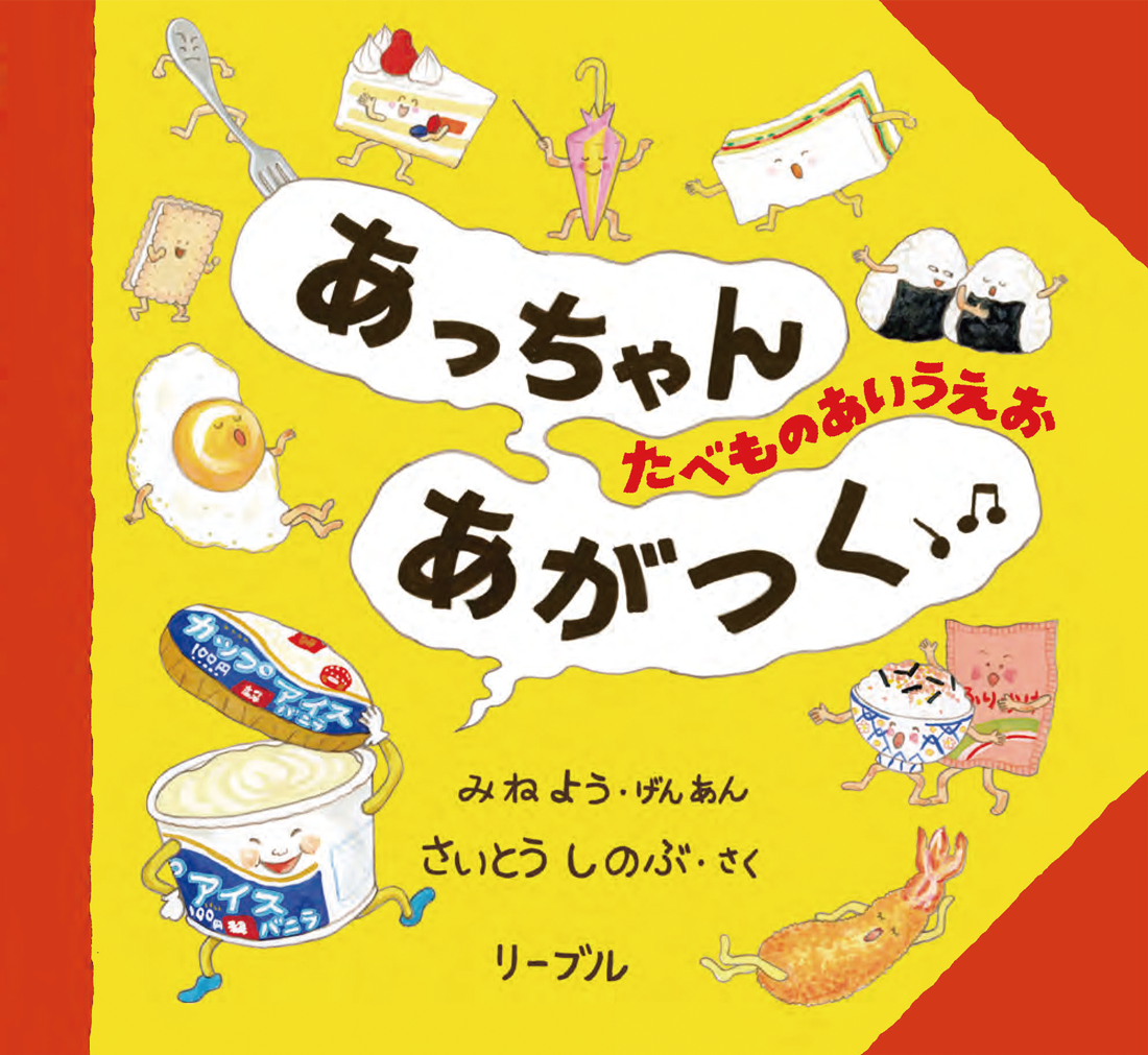 2001年に発売以降、おかげさまで発行50万部をこえました。うたって、あそべて、たのしめる、愉快な「たべものあいうえお」。「あ」から「ん」まで、濁音、半濁音も含めて69音すべてが登場。名前の頭文字で「ことばあそび」もできます。