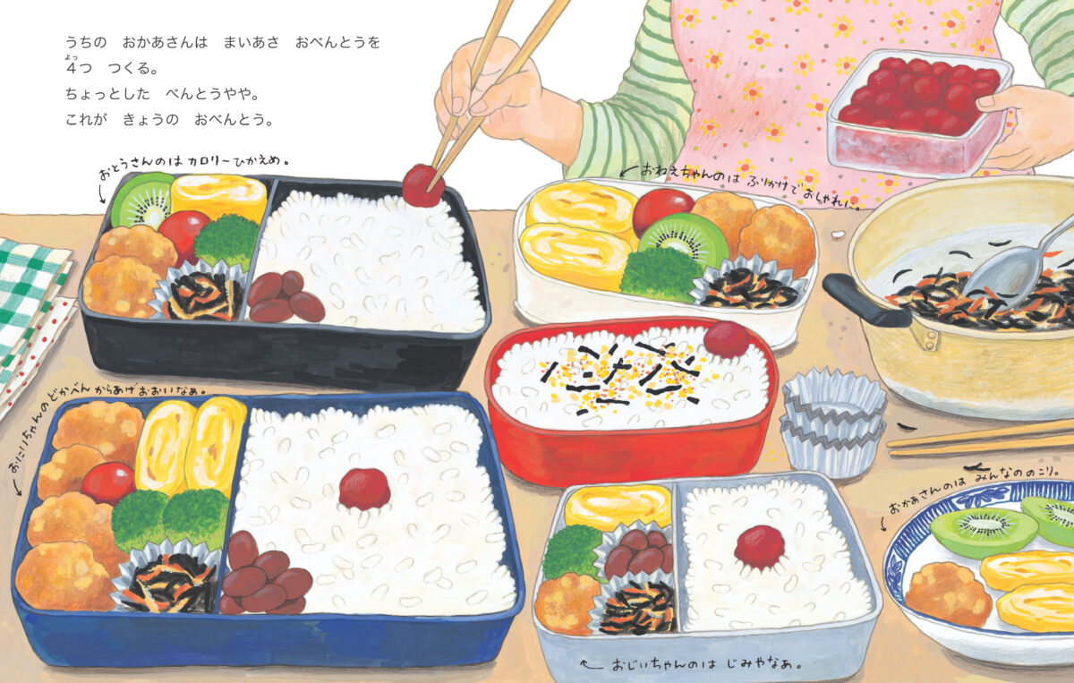 うちのおかあさんはたくさんお弁当を作る。お兄ちゃんはドカ弁、お姉ちゃんはヘルシー弁当、ぼくのは?身近なお弁当からユーモラスなお弁当まで軽快にご紹介!