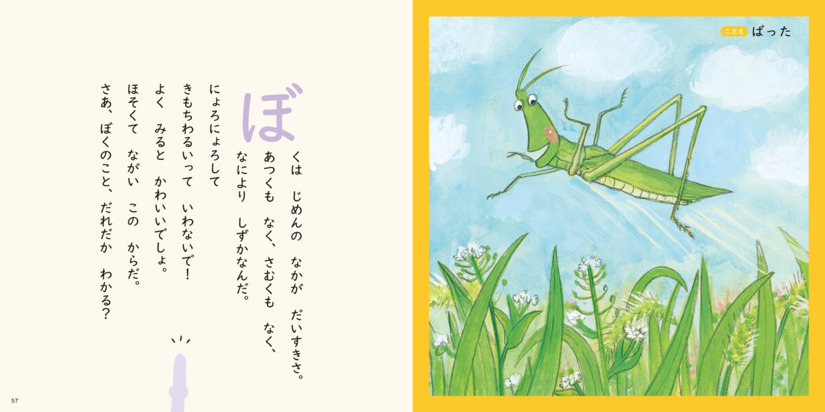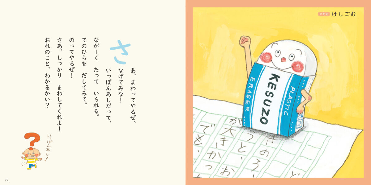 いろいろな「たべもの」「いきもの」「いえにあるもの」の楽しいなぞなぞがたっぷり入った小さな絵本。書き込まれた魅力的な絵は、何度見ても楽しめます!各章の終わりには、楽しい探し絵のページも入っています。