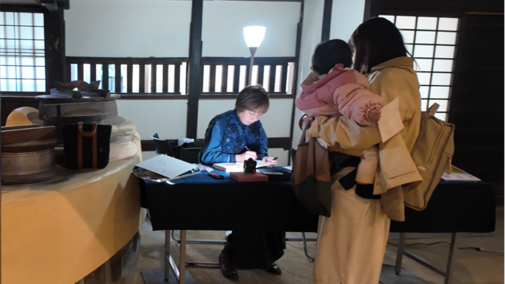 地元開催ならではの、さいとうしのぶさんの地元の同級生たちがボランティアとして運営に参加していました。 「昔からの仲間が描いた絵を、自分たちの手で届けたい」 そんな純粋な想いを持ったボランティアの皆さんが、会場をより一層アットホームな雰囲気に包み込んでいました。