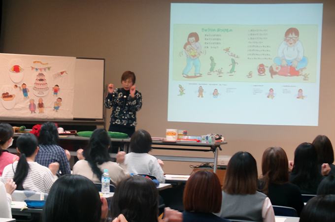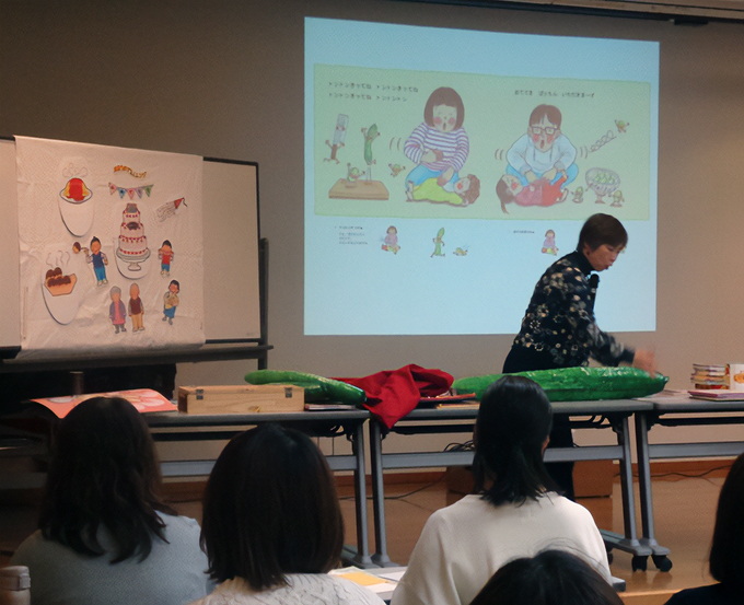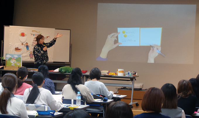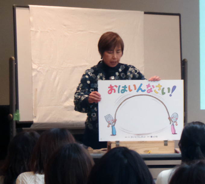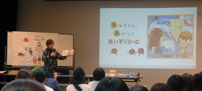 絵本を紹介したり、睡眠教育のお話をさせていただいたのち、自分のお名前で絵本を作っていただきました。