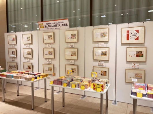 絵本の原画展示や、わらべうたの絵本や大型絵本、紙芝居などの読み聞かせる絵本ライブや手作り絵本を作るワークショップといった、ちいさなお子さんから大人まで楽しめる活動を全国各地で行っています。